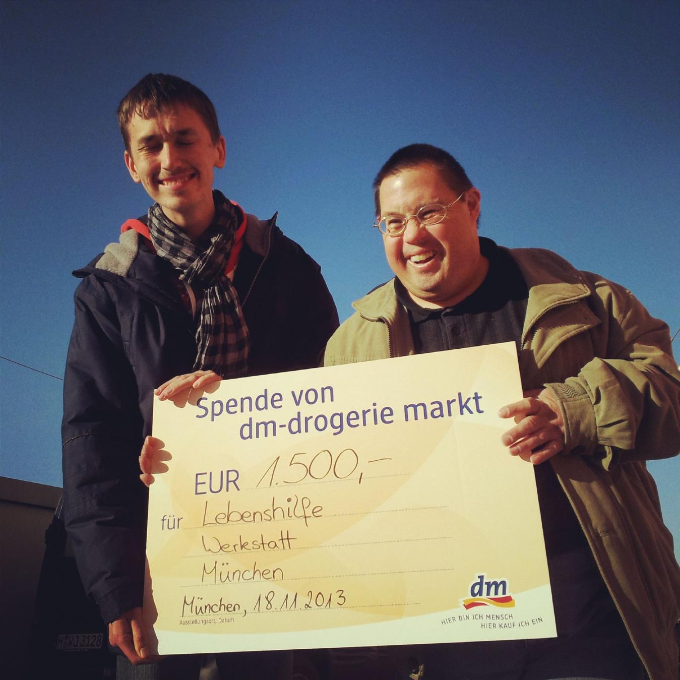 Anläßlich des ersten Geburtstages ihrer Filiale haben die Mitarbeiter des dm-Marktes in der Albert-Roßhaupter-Straße eine außergewöhnliche Spendenaktion organisiert. Für den guten Zweck nahm Anne Rienäcker, Mitarbeiterin der Lebenshilfe Werkstatt München, an der Kasse Platz und scannte Waren im Wert von 1165 € ein. Dieser Betrag wurde vom Team dann noch auf 1500.-€ erhöht.