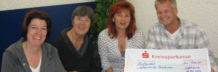 500,-- € konnten aus dem Verkauf von Bekleidung und Haushaltsgegenständen "Im kleinen Warenhaus in Siegertsbrunn bei München" erzielt werden. Das Geld wurde von den ehrenamtlichen Mitarbeiterinnen des Warenhauses für die Zweigwerkstatt Putzbrunn übergeben, hiermit konnte neues Therapiematerial angeschafft werden.